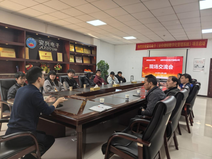 为进一步深化校企合作,拓展学生就业发展渠道,促进毕业生更充分就业。11月19日上午,在学校388vip太阳集团官网处处长胡拥军、材化院党委副书记张清华、机电院党委副书记易志明、就业专干晏小波带领下,十余名师生前往益阳安兴电子有限公司开展访企拓岗企业现场就业推介活动。益阳安兴电子有限公司副总经理李彦、品质部经理李向前热情接待了师生一行。