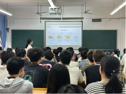 在探讨羟基酸制备方法时,刘老师通过设置启发性问题,组织小组讨论,充分调动学生的积极性,引导学生主动思考,鼓励大家大胆提出具体合成方案,有效提升学生的实践思维。讲解羟基酸化学性质时,刘老师播放“乳酸缩聚生成聚乳酸(PLA)”的实验视频,让学生直观感受到羟基酸在可降解材料领域的实际应用,顺利实现知识迁移;结合碳中和时代背景,深入探讨γ-戊内酯(GVL)等羟基酸衍生物的绿色合成路径。不仅激发学生的科研兴趣,还巧妙融入绿色化学理念和科学伦理,体现了化学学科服务可持续发展的育人导向。