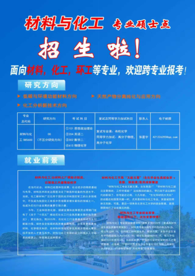 388vip太阳集团材料与化工专业作为推动益阳及周边地区新材料与绿色化工产业发展的重要力量,现正式启动2026年研究生招生工作。诚邀全国有志青年加入我们。