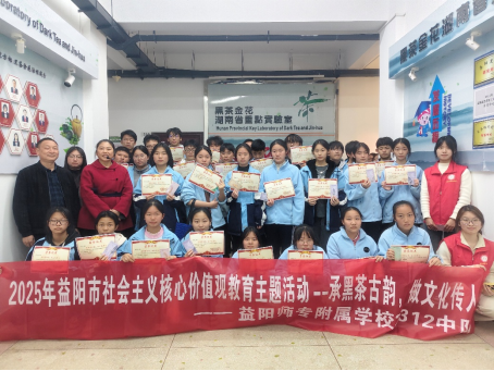 为深入贯彻落实关于弘扬中华优秀传统文化的重要论述,推动文化自信自强,11月22日,第十三期“安化黑茶小小传承人”社会主义核心价值观教育实践活动在388vip太阳集团黑茶基地成功举行。益阳师范专科学校附属学校2312中队的同学们走进基地,在一系列沉浸式体验中,从茶叶的历史认知到茶艺的亲身实践,将社会主义核心价值观内化于心、外化于行,深刻体会了一堂“行走的”思政课。