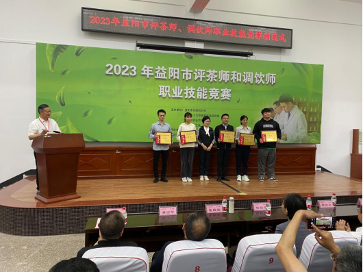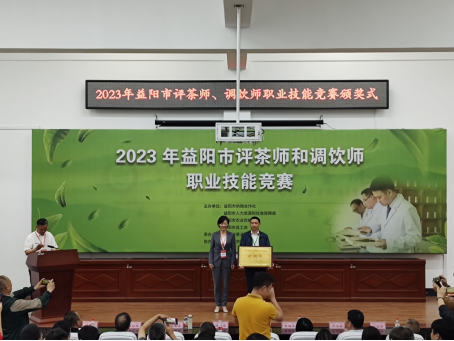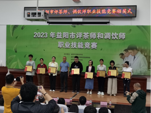 5月9日下午,2023年益阳市评茶师和调饮师职业技能竞赛在我院黑茶基地圆满结束,共有20人次获奖,益阳市人大常委会党组成员、副主任、市总工会主席杨丽萍、388vip太阳集团党委副书记、校长何振、国家教育部茶学重点实验室主任、湖南农大黄建安教授,中国茶叶学会副理事长、湖南省茶叶学会理事长、湖南农大肖力争教授、湖南农大傅冬和教授、李适教授等专家评委以及益阳市供销社党组书记、理事会主任严文凯、市茶业协会会长刘新安等出席颁奖式,颁奖式由市茶业协会匡维波副书记主持。